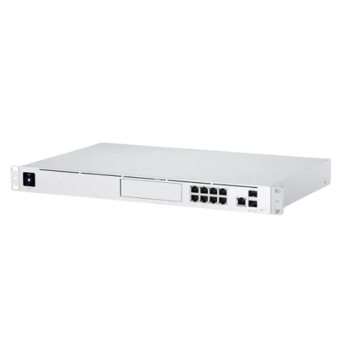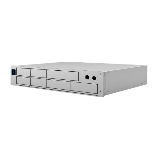 An all-in-one dynamo that sits at the heart of every network we implement, the Dream Machine Pro excels as a security gateway, router, managed switch, and cloud network controller. Install a 3.5” HDD in the drive bay to add NVR capability through UniFi Protect for smaller camera setups.